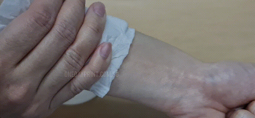 - Rub onto the Temp Tattoo until it slowly comes off. (Tip: Rub from the edge)