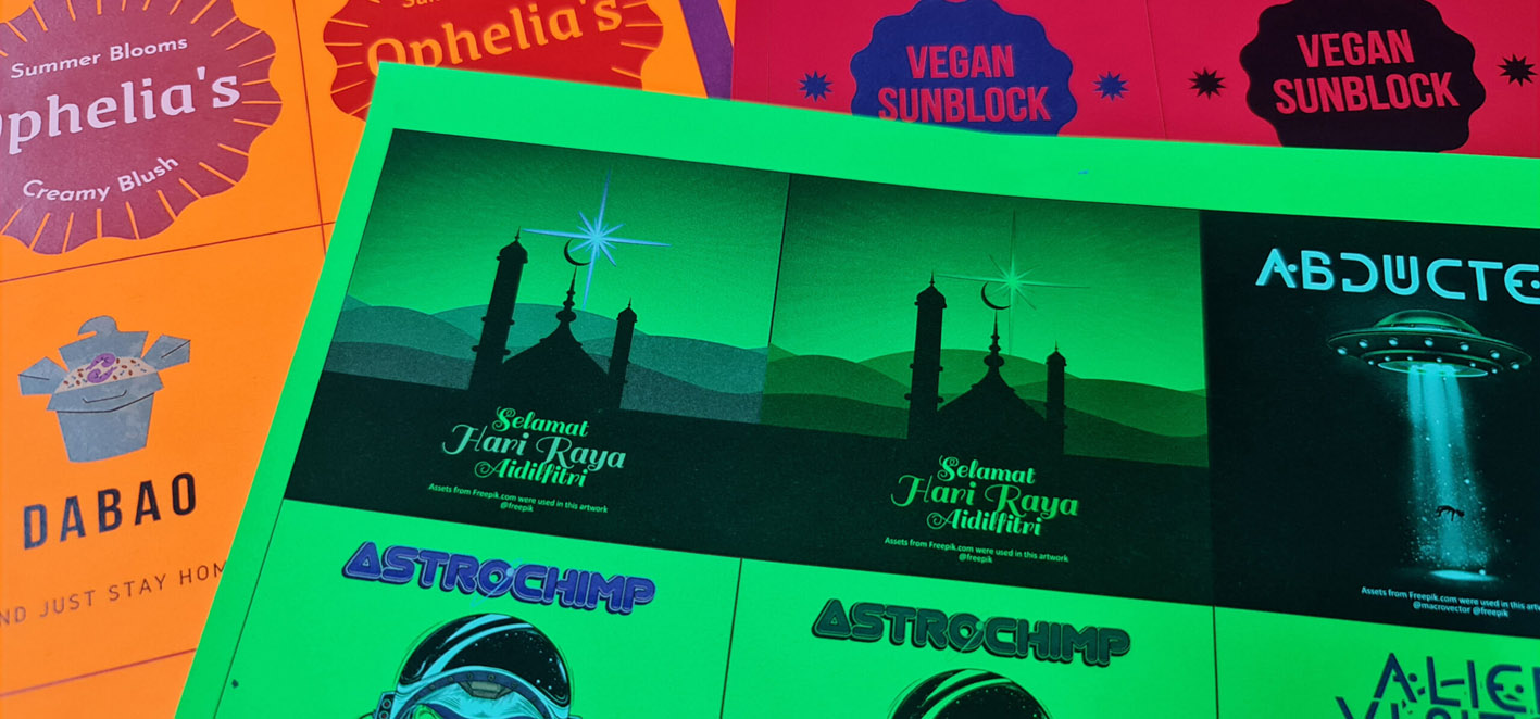 Maybe you're a business owner looking for sticker printing for your products this month of Ramadan & Hari Raya Aidilfitri celebration, or your business is going so well that you ran out of stickers and need to urgently replenish the stickers for your products. Fret not, we are here to help! Just simply send us your artwork and we can get them printed from as fast as 15mins up to 24hrs!