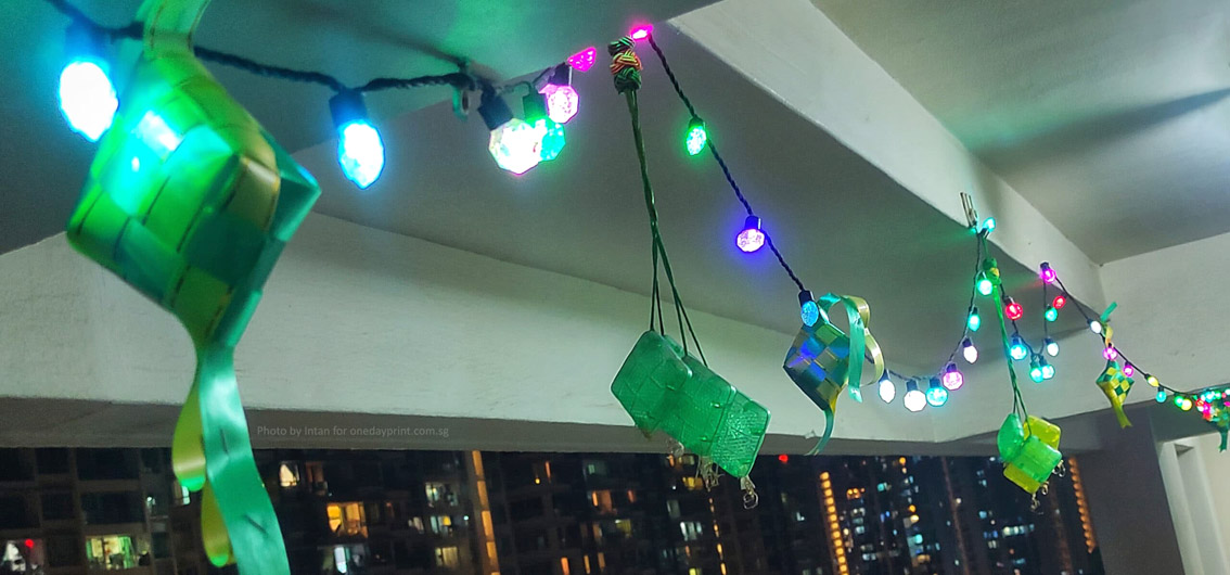 Families would decorate their homes before the Hari Raya Aidilfitri celebration. In the old kampong days, small homemade kerosene lamps were used to light up homes. In modern times, decorative lighting is used in place of kerosene lamps.